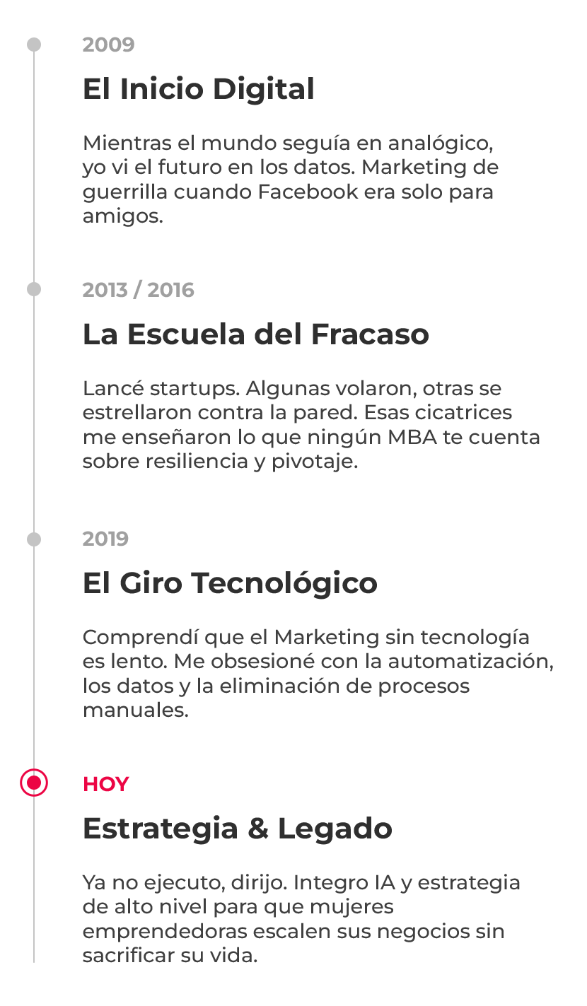 Mi camino no ha sido una línea recta. Desde mis inicios en 2009, hasta una integración de IA hoy, cada etapa ha sido una pieza clave en el sistema que enseño ahora.